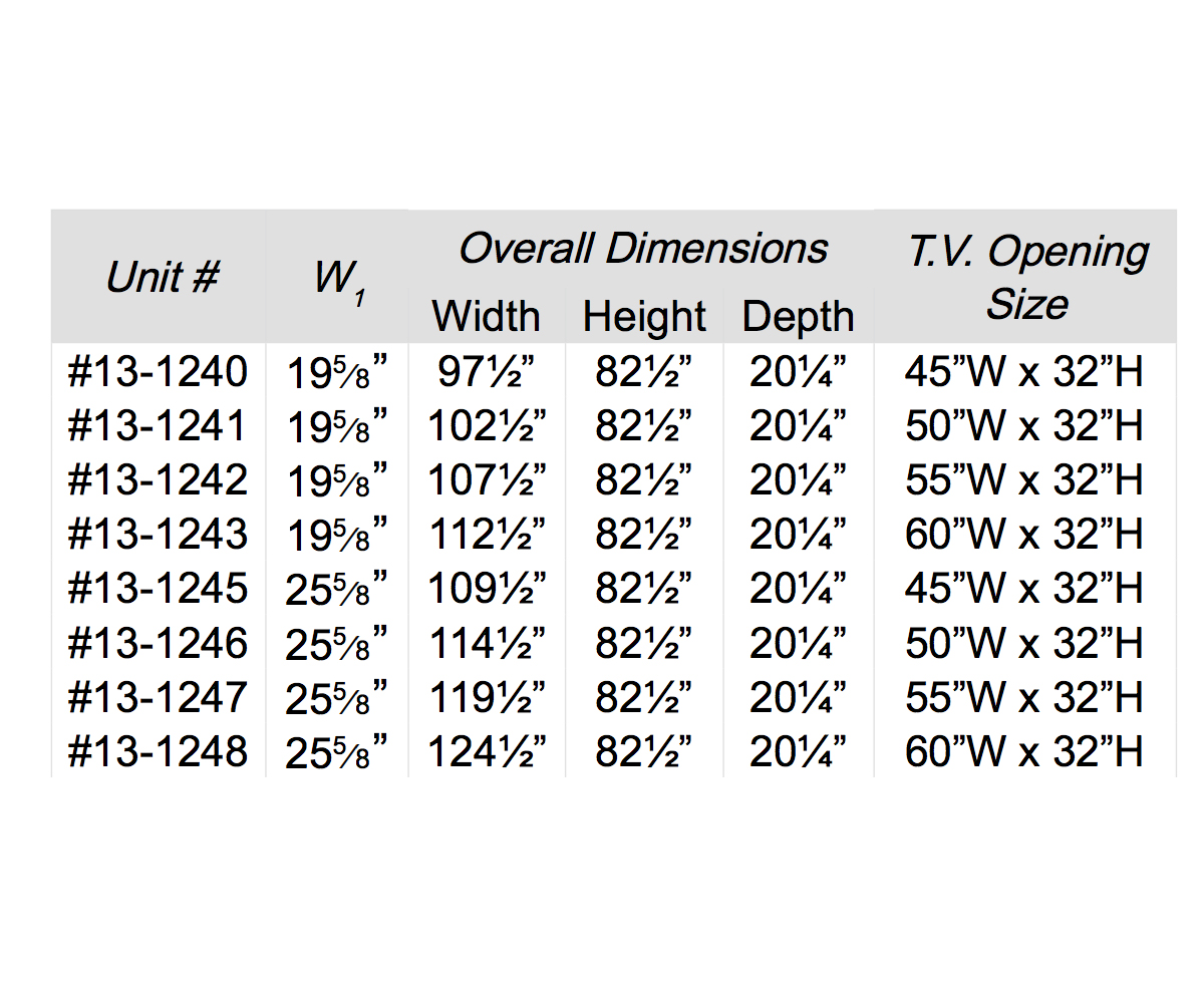 TV Opening: 50″W x 32″H