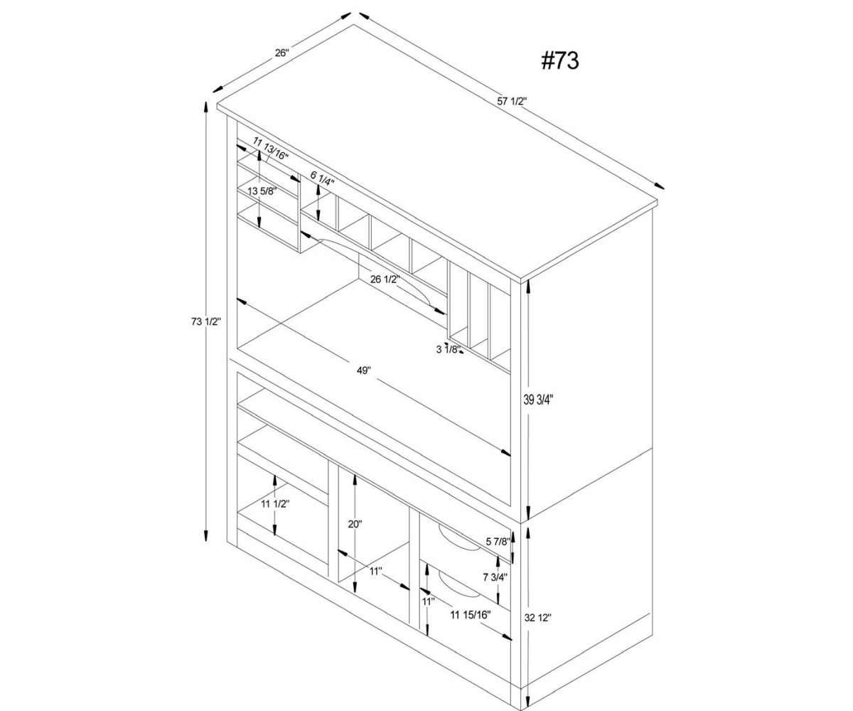 Dimensions: 57½”W x 26″D x 73½”H