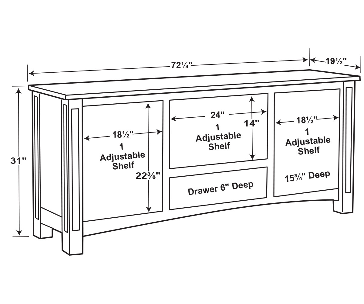 Dimensions: 72¼”W x 19½”D x 31″H